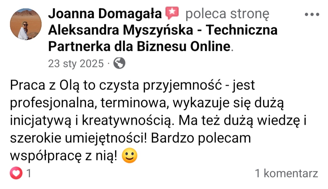 Właśnie tutaj wkraczam ja – z technicznym wsparciem dopasowanym do Twoich potrzeb. Zamiast skomplikowanego żargonu oferuję proste i zrozumiałe podejście, które pozwoli Ci poczuć się pewnie. Wytłumaczę wszystko krok po kroku, odpowiem na Twoje pytania, zajmę się ustawieniami i integracjami, a Ty zyskasz czas i spokój ducha.