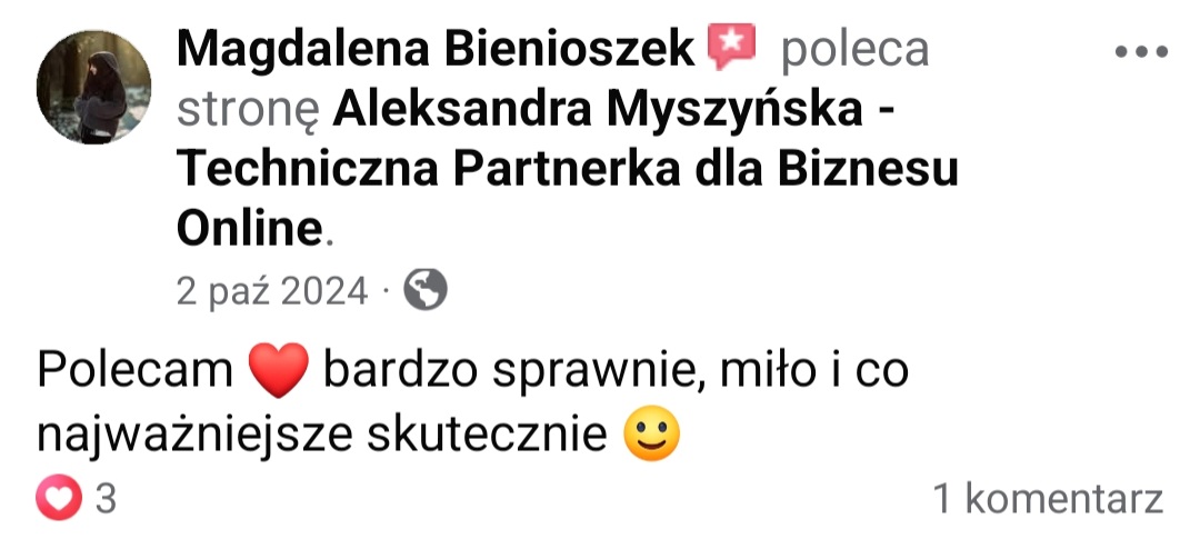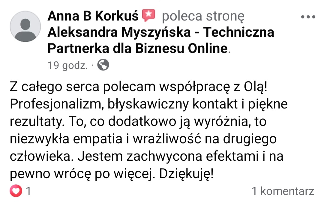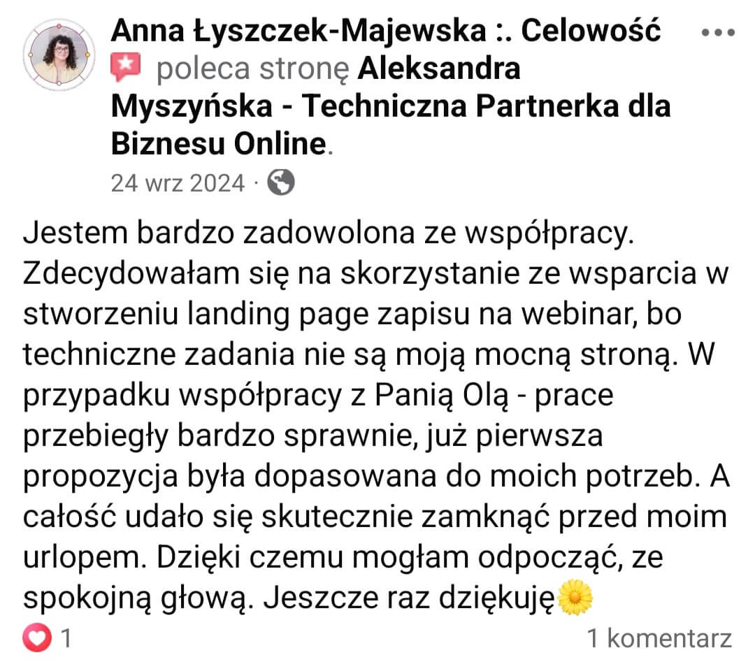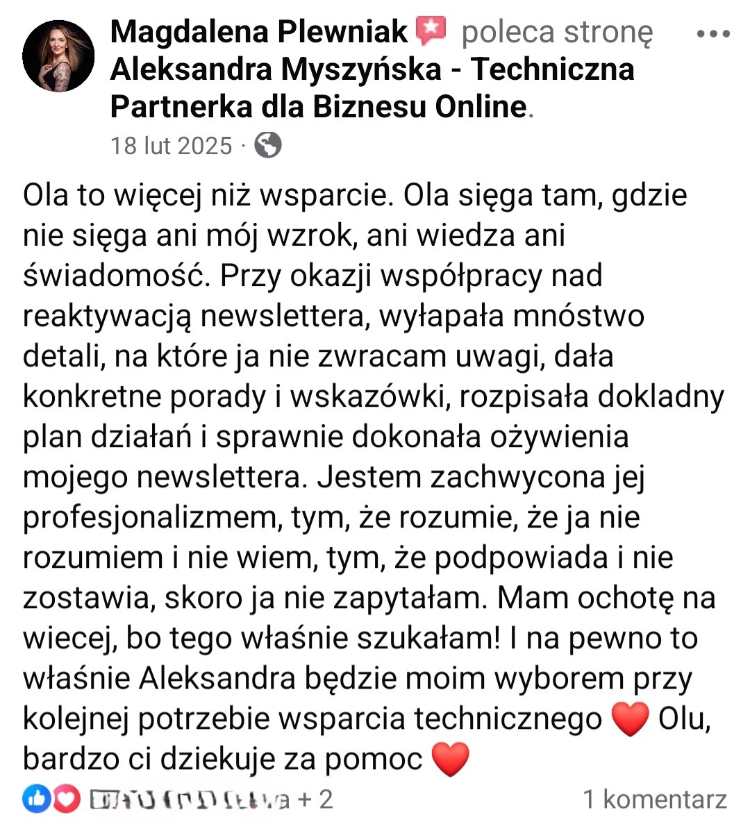 Mam na imię Aleksandra i pomagam przedsiębiorczym kobietom uwolnić się od technicznych frustracji.